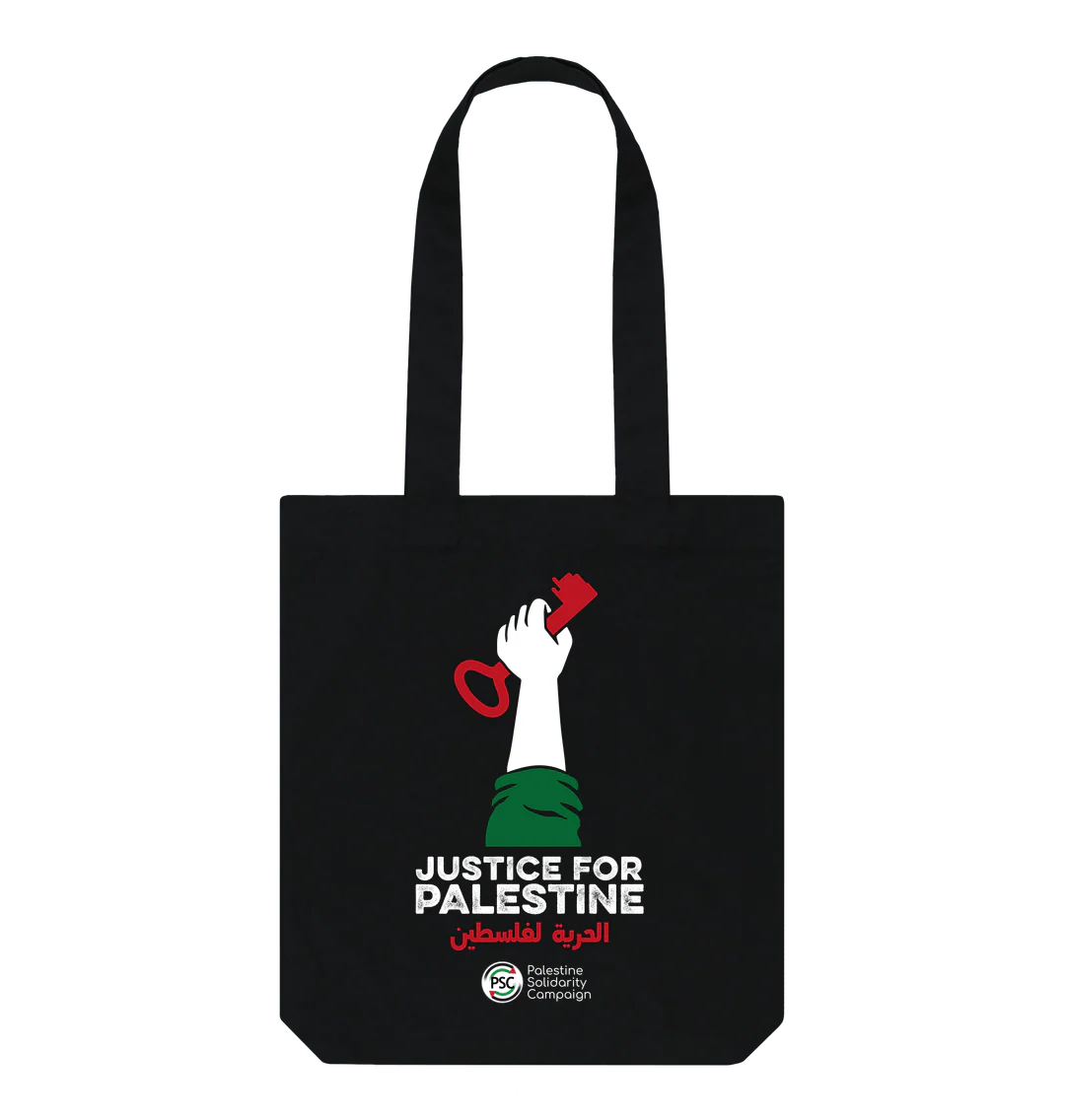 Show your support with our Justice for Palestine tote bag.